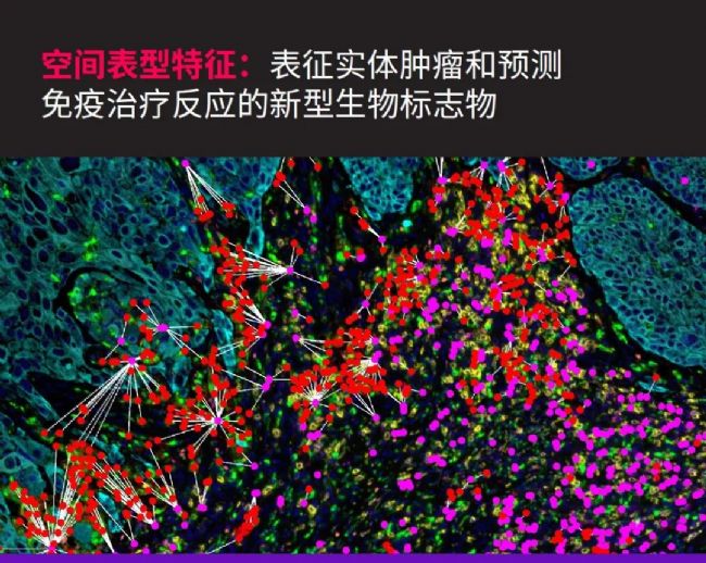 越來越多的研究表明,基于多重免疫熒光(mIF)技術的空間表型特征正在用以開發(fā)新一代生物標志物,它使用多重抗體面板在完整組織樣本中通過所處環(huán)境中的功能和狀態(tài)來描述腫瘤和免疫細胞的特征。不同的細胞密度模式和相互作用構成的細胞間腫瘤微環(huán)境中(TME)已被證明可以對疾病結果和免疫治療反應高度預測。