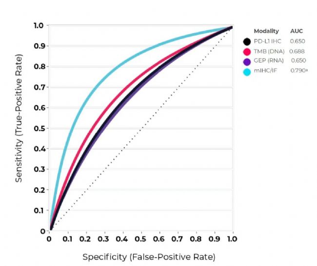 空間表型的核心是一種被稱為多重免疫熒光(mIF)的技術,這是新一代病理工作流程,可生成有關癌癥樣本的定量和可重復的見解。Lu等人發(fā)表在《JAMA Oncology》上的一項多種診斷技術的meta分析顯示,在預測誰將對PD-1/PD-L1免疫治療產(chǎn)生反應方面,mIF比目前廣泛使用的技術PD-L1 IHC、基于下一代測序的腫瘤突變負荷(TMB)和基因表達譜(GEP)具有更高的預測價值。