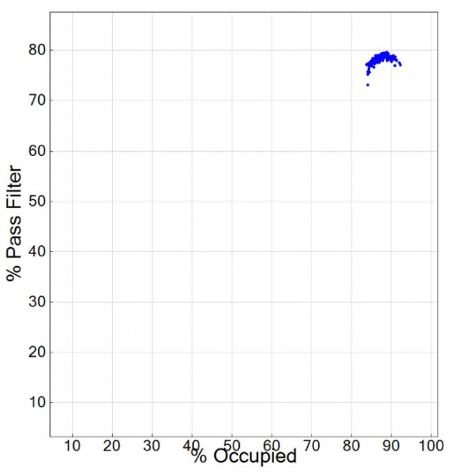 點有一些輕微的負(fù)斜率、接近垂直,并且% Occupied高達(dá)90以上, % Pass Filter的變化幅度較大。