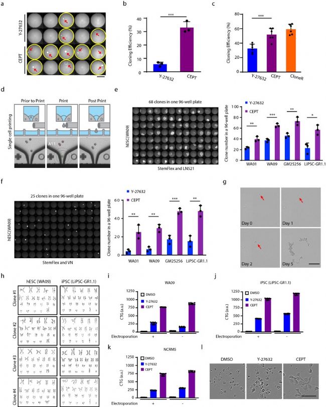 圖3:Cytena單細(xì)胞打印機(jī)驗(yàn)證CEPT提高單克隆hPSC活率