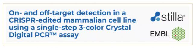 歐洲分子生物學(xué)實(shí)驗(yàn)室(EMBL)研究人員Moritz Kueblbeck, Andrea Callegari等分享了一種快速驗(yàn)證基因編輯效果的實(shí)驗(yàn)方案。該方案使用naica®微滴芯片數(shù)字PCR系統(tǒng)(Crystal Digital PCR™)實(shí)現(xiàn)了一次三色分析就可完成目標(biāo)拷貝數(shù)的評(píng)估和脫靶事件的檢測(cè)。且基于數(shù)字PCR (dPCR)的高敏感性,無(wú)需大量的樣品,因此,在早期就可以完成篩選試驗(yàn)。Crystal Digital PCR™一次實(shí)驗(yàn)3個(gè)小時(shí)內(nèi)就可完成,對(duì)于編輯錯(cuò)誤的克隆當(dāng)天就可終止培養(yǎng)。那么這個(gè)實(shí)驗(yàn)具體是怎么設(shè)計(jì)的?就讓我們一起來(lái)看看吧。