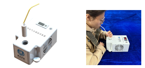 圖1 呼出氣采集器BioscreenII(左)和 呼出氣冷凝液的采集(右)