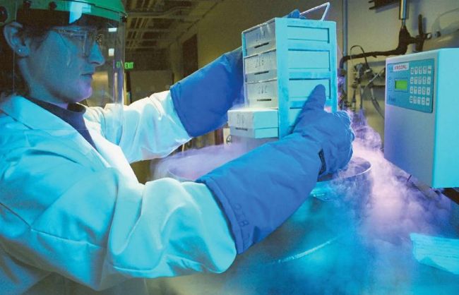 冷凍保存的一個(gè)重要應(yīng)用是冷凍和儲(chǔ)存造血干細(xì)胞,存在于骨髓和外周血中。在自體骨髓搶救,造血干細(xì)胞是在高劑量化療治療之前從患者的骨髓中收集的。治療后,患者的冷凍保存細(xì)胞被解凍并回輸回體內(nèi)。這個(gè)過程是必要的,因?yàn)榇髣┝炕煂撬栌袠O大的毒性。冷凍保存造血干細(xì)胞的能力大大提高了某些淋巴瘤和實(shí)體瘤惡性腫瘤的治療效果。在白血病患者的情況下,他們的血細(xì)胞是癌性的,不能用于自體骨髓搶救。因此,這些患者依賴于從新生兒的臍帶或從捐贈(zèng)者獲得的冷凍保存的造血干細(xì)胞上。自 1990 年代后期以來,人們已經(jīng)認(rèn)識到造血干細(xì)胞和間充質(zhì)干細(xì)胞(來源于胚胎結(jié)締組織)能夠分化為骨骼和心肌組織、神經(jīng)組織和骨骼。今天,人們對這些細(xì)胞在組織培養(yǎng)系統(tǒng)中的生長以及將這些細(xì)胞冷凍保存以用于未來治療各種疾。òㄉ窠(jīng)和肌肉系統(tǒng)疾病以及肝臟和心臟疾病)的興趣濃厚.