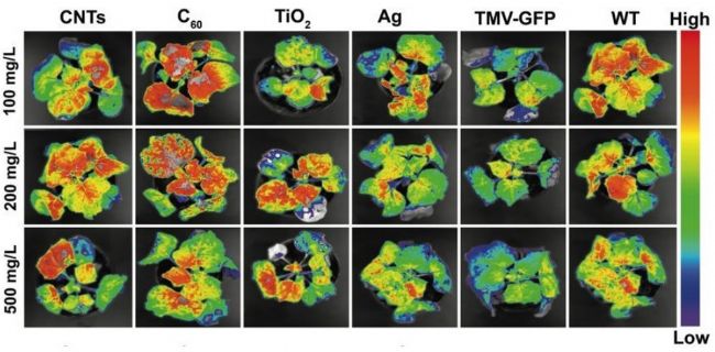 1.中國(guó)農(nóng)業(yè)大學(xué)資源與環(huán)境學(xué)院的研究人員使用FluorCam葉綠素?zé)晒獬上裣到y(tǒng)(大型版)評(píng)估了5種納米材料對(duì)模式植物本氏煙病毒感染的抑制效果,發(fā)現(xiàn)用碳納米管(CNT)和富勒烯(C60)處理的病毒感染植株具備和健康的對(duì)照組同等的光合活性,因此兩種碳基納米材料表現(xiàn)出良好的病毒抑制和植物保護(hù)作用。該研究為納米材料在農(nóng)業(yè)領(lǐng)域的應(yīng)用提供了新方向(Adeel et al., 2021)。