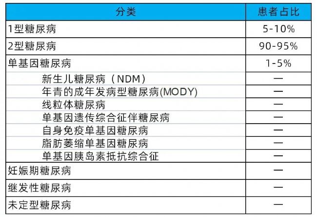 臨床上對于糖尿病的病因分型,目前應用最為廣泛、大體上最被公認是1999年世界衛(wèi)生組織(WHO)公布的這4類,即1型糖尿病(T1DM)、2型糖尿病(T2DM)、特殊類型糖尿病和妊娠期糖尿病(GDM)。2019年WHO又在此基礎上,將成人隱匿性自身免疫糖尿病(LADA)和酮癥傾向T2DM歸類為“混合型糖尿病”,且添加了“未分類糖尿病”,從而將糖尿病分為6種類型[5]。每種類型糖尿病的特征如下: