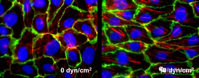 流體下的活細(xì)胞成像可以實時可視化剪切應(yīng)力效應(yīng)(例如,肌動蛋白應(yīng)激纖維的形成)