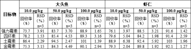 表3 獸殘加標(biāo)回收實(shí)驗(yàn)結(jié)果