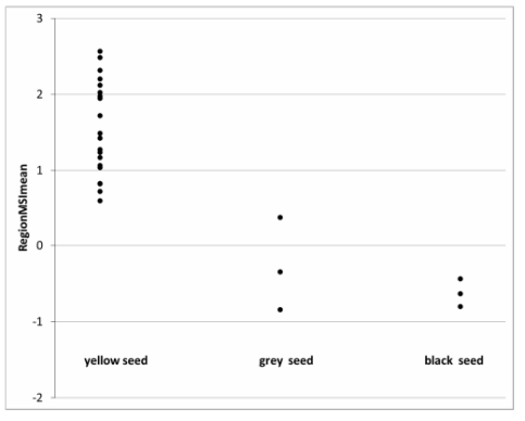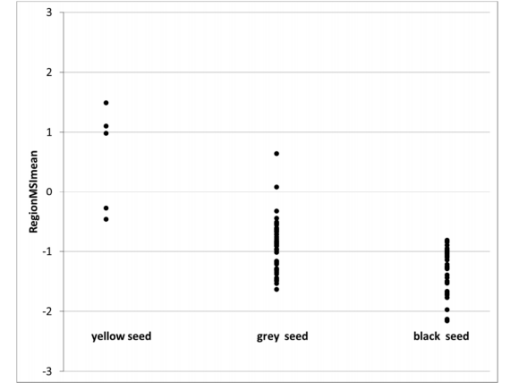 圖4.在四唑試驗(yàn)中具有/不具有酶活性的種子RegionMSI平均值圖