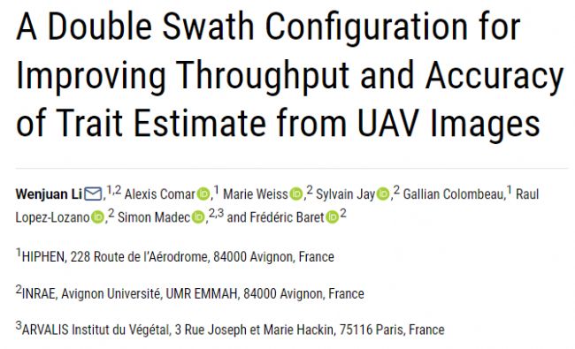 近日,Plant Phenomics 在線發(fā)表了法國國家農(nóng)業(yè)食品與環(huán)境研究院(INRAE)和法國 HIPHEN 公司的 UMT CAPTE 團(tuán)隊題為 A double swath configuration for improving throughput and accuracy of trait estimate from UAV images 的研究論文。研究人員開發(fā)了一種新穎的配置,可以大大提高準(zhǔn)確性并將圖像采集和處理時間減半,從而為更高效的精準(zhǔn)農(nóng)業(yè)打開了大門。