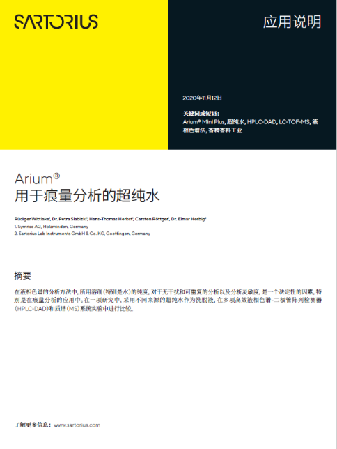 應用說明研究了采用不同來源的超純水作為洗脫液,進行多項高效液相色譜-二極管陣列檢測器(HPLC-DAD)和質(zhì)譜(MS)系統(tǒng)的實驗,從而證實了