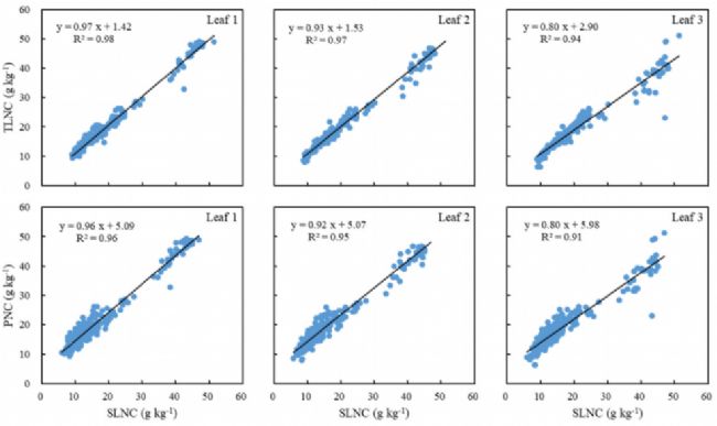 氮素是影響作物產(chǎn)量和品質(zhì)最重要的養(yǎng)分之一。近距離遙感技術(shù)在精準農(nóng)業(yè)中的應(yīng)用為作物氮素狀況的無損實時診斷和精準管理提供了新的機遇。值得注意的是,葉片熒光傳感器在精確估計植物氮素狀況方面顯示出了很大的潛力。然而,大多數(shù)使用葉片熒光傳感器的研究主要集中在估算葉片氮濃度(LNC),而不是植物氮濃度(PNC)。本研究的目的是(1)確定玉米(Zea mays L.)LNC和PNC的關(guān)系,(2)評估影響葉片熒光傳感器參數(shù)變化的主要因素,以及(3)建立一個通用模型來直接估計不同生長階段的PNC。2016年和2017年,在中國東北兩個不同土壤類型、種植密度和施氮量的農(nóng)田中,使用葉片熒光傳感器Dualex 4對四個生長階段的三個不同位置的玉米葉片進行了測試。結(jié)果表明,葉片總氮濃度(TLNC)和PNC與單葉氮濃度(SLNC)有很強的相關(guān)性(R2=0.91~0.98)。TLNC和PNC受玉米生育期和施氮量的影響,但不受土壤類型的影響。當與播后天數(shù)(DAS)參數(shù)結(jié)合使用時,改良的Dualex 4指數(shù)在不同生長階段與TLNC和PNC表現(xiàn)出強烈的相關(guān)性。改良葉綠素濃度(mChl)和改良氮平衡指數(shù)(mNBI)都是PNC的可靠預測因子。利用抽穗期(VT)前新完全展開的葉片和VT期穗上葉片獲得的信息來估計PNC,可以獲得良好的結(jié)果?梢缘贸鼋Y(jié)論,當與DAS一起使用時,葉片熒光傳感器(Dualex 4)可以可靠地估計玉米不同生長階段的PNC。