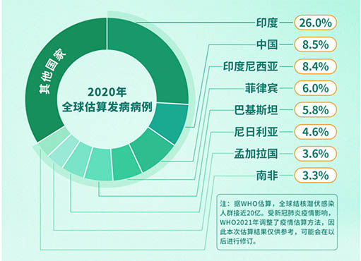 圖一:2020年全球估算肺結(jié)核發(fā)病病例占比