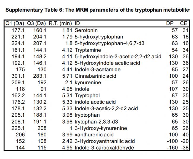 使用SCIEX QTRAP® 6500+系統(tǒng)(LC-MS/MS),上述研究定量分析了對(duì)照組和抗生素處理組按蚊在血液喂食0h和24h后代謝組差異規(guī)律,特別關(guān)注了13種色氨酸代謝物。進(jìn)一步通過整合分析代謝組及轉(zhuǎn)錄組等數(shù)據(jù)發(fā)現(xiàn)共生菌參與按蚊的色氨酸代謝并調(diào)控宿主對(duì)瘧原蟲的耐受性。