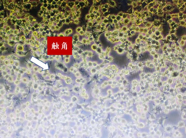 分化的細胞:呈多角形,明顯的體積變大,時常有較長的觸角。