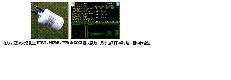 在線式監(jiān)測葉綠素絕對含量(mg/m2)、冠層光譜NDVI、NDRE(歸一化紅邊植被指數)、PPR(植物色素比率指數)和CCCI(冠層葉綠素含量指數),評估植物抗旱性、植物氮含量、營養(yǎng)脅迫、病害脅迫。精確測量非光化學淬滅NPQ弛豫組分:葉黃素循環(huán)(qE)、葉綠體遷移(qM)、光抑制(qI)、狀態(tài)轉換(qT)用于評估環(huán)境脅迫條件下植物內在的生理調節(jié)能力,如耐干旱、耐高溫、耐寒冷、耐鹽堿能力。
