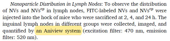 文章中,評估NVscp在小鼠體內(nèi)淋巴結(jié)的累積活體實驗成像,使用了AniView100多模式動物活體成像系統(tǒng)拍攝。