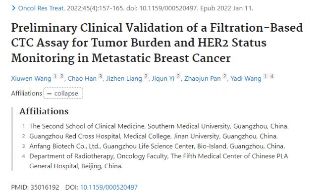 Preliminary Clinical Validation of a Filtration-Based CTC Assay for Tumor Burden and HER2 Status Monitoring in Metastatic Breast Cancer的文章,探索研究基于過濾的CTC測定轉(zhuǎn)移性乳腺癌腫瘤負(fù)荷和HER2狀態(tài)監(jiān)測的初步臨床驗(yàn)證情況。