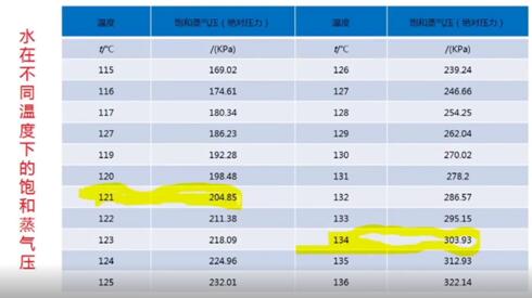 2、水在不同溫度下的飽和蒸汽壓:121℃對(duì)應(yīng)兩個(gè)大氣壓,134/135℃對(duì)應(yīng)三個(gè)大氣壓