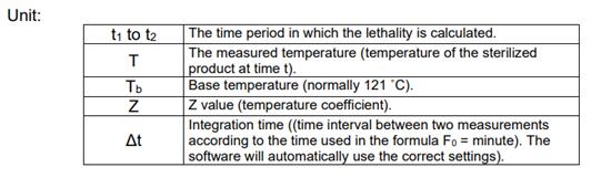 1、虹科ELLAB的溫度驗(yàn)證軟件ValSuite自帶滅菌值計(jì)算功能,默認(rèn)自動(dòng)計(jì)算F0。以下是計(jì)算公式: