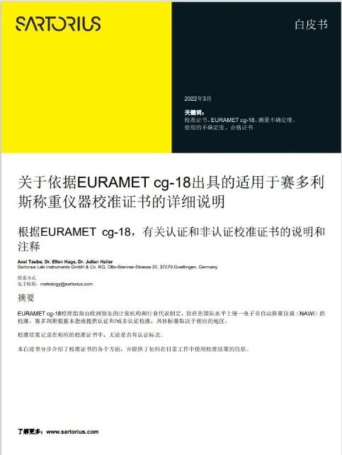 關(guān)于依據(jù)EURAMET cg-18出具的適用于賽多利斯稱重儀器校準(zhǔn)證書的詳細(xì)說(shuō)明和注釋