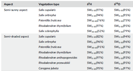 本研究目標(biāo)是:(1)觀察相同和不同生境下亞高山灌木的水源以及(2)研究亞高山灌木對(duì)水源變化的適應(yīng)性。