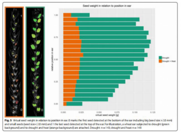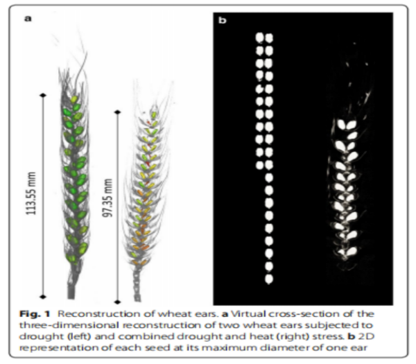 Fraunhofer研究院的EZRT研究所科研人員,利用該系統(tǒng)發(fā)表了題為Drought and heat stress tolerance screening in wheat using computed tomography的論文,研究使用計(jì)算機(jī)斷層掃描系統(tǒng)對(duì)麥穗進(jìn)行了斷層掃描研究,可對(duì)種子結(jié)構(gòu)例如種子變形等進(jìn)行預(yù)測(cè)和測(cè)量,文章發(fā)表在Plant Methods上。