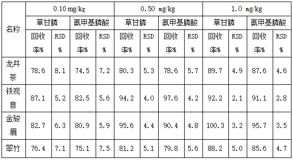 草甘膦(GLY)是一種高效、低毒、廉價(jià)的內(nèi)吸傳導(dǎo)型廣譜滅生性除草劑,被廣泛施用于茶園等農(nóng)業(yè)生產(chǎn)中。隨著草甘膦的廣泛使用,其在茶葉、水果等植物源食品中殘留量的檢測(cè)越來(lái)越受到關(guān)注。草甘膦及其代謝物氨甲基膦酸具有極性強(qiáng)、易溶于、難溶于各種有溶劑,這給常規(guī)檢測(cè)帶來(lái)了極大的困難和挑戰(zhàn)。