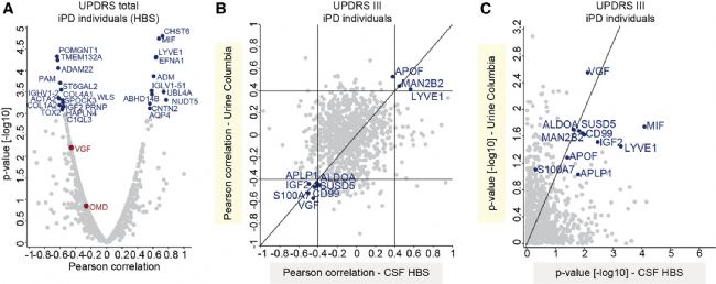 6. 腦脊液(及尿液)蛋白質(zhì)特征與PD臨床得分(UPDRS score)相關(guān)