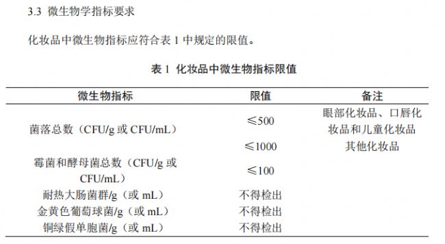 在《化妝品安全技術規(guī)范》的微生物檢驗方法中,規(guī)定了菌落總數、耐熱大腸菌群、銅綠假單胞菌、金黃色葡萄球菌、霉菌和酵母菌的指標限制和具體的檢測方法。