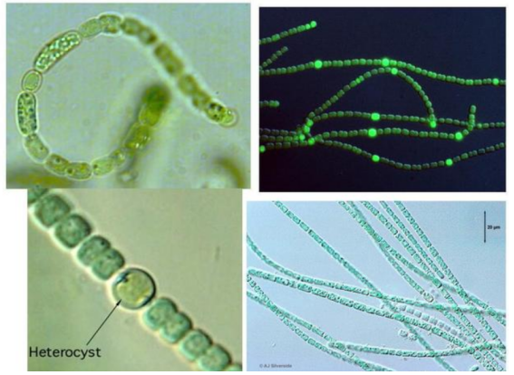 異形胞(heterocyst)某些絲狀藍(lán)藻(如束毛藻、魚腥藻、念珠藻等)所特有的變態(tài)營養(yǎng)細(xì)胞,是由普通營養(yǎng)細(xì)胞在一定的條件下尤其是氮素營養(yǎng)缺乏時(shí)分化而成。異形胞一般與營養(yǎng)細(xì)胞同形,單個(gè)地間生,一條藻絲上往往有數(shù)個(gè)異形細(xì)胞。異形胞與營養(yǎng)細(xì)胞的主要形態(tài)區(qū)別是:個(gè)體大,細(xì)胞壁厚,細(xì)胞質(zhì)中的顆粒物質(zhì)溶解成顆粒狀態(tài),顏色呈淡黃綠色或呈透明狀。