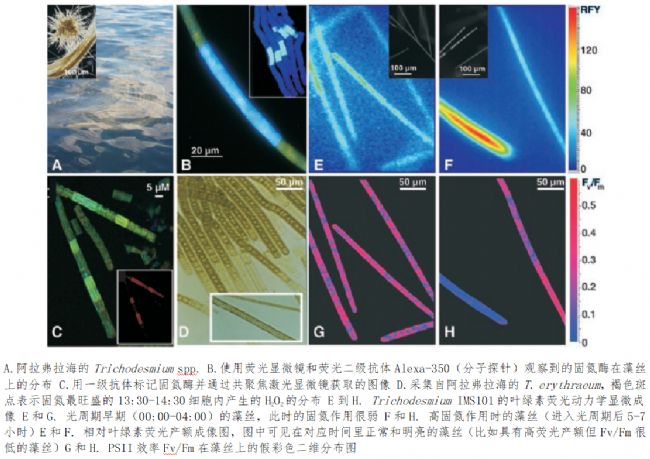 Trichodesmium strain IMS101絲狀藻的光合特性進(jìn)行研究,對(duì)比固氮酶的活性與分布,發(fā)現(xiàn)固氮和光合作用從時(shí)間和空間兩方面被隔離開了。他們推測在光合放氧進(jìn)化的早期階段,固氮酶是厭氧異養(yǎng)機(jī)制的一個(gè)電子受體,而光系統(tǒng)I(PSI)為固氮提供了厭氧的微環(huán)境。這一研究成果發(fā)表于2001年《Science》。
