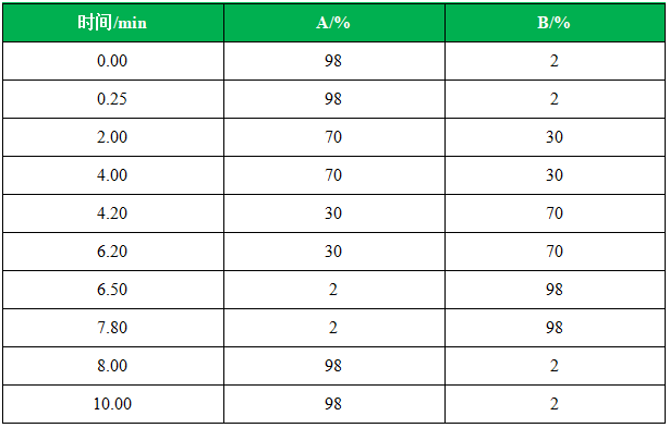 洗脫方式:梯度洗脫,見表1