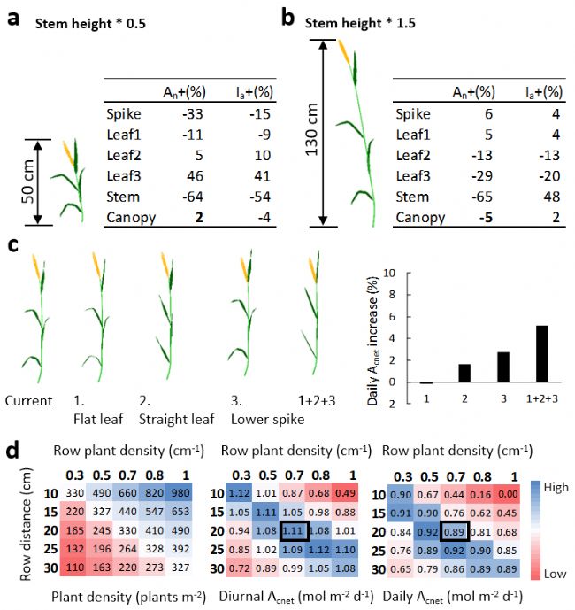研究者們還系統(tǒng)研究了小麥群體光合作用的潛在改良靶點(diǎn)(圖4),包括:
