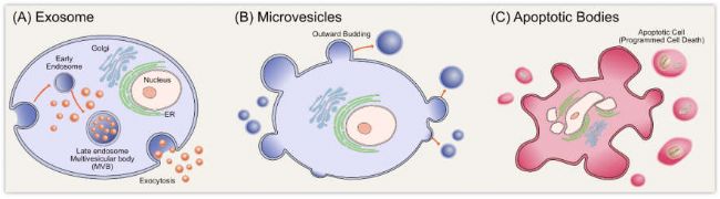 細(xì)胞外囊泡 (EVs) 是一類包載了核酸、蛋白質(zhì)、脂類等生物活性分子的膜性囊泡,其內(nèi)含物在一定程度上類似于其來(lái)源母細(xì)胞,是細(xì)胞間信號(hào)傳輸?shù)妮d體。根據(jù)分泌途徑的不同,EVs 主要分為外泌體和微囊泡兩大類,由于國(guó)內(nèi)讀者習(xí)慣稱呼“外泌體”,故文中不對(duì) EVs 與外泌體做明顯區(qū)分。有研究表明,細(xì)胞外囊泡的蛋白質(zhì)和 RNA,可介導(dǎo)靶向細(xì)胞間的信號(hào)傳遞,甚至遺傳信息的功能性轉(zhuǎn)移,這一發(fā)現(xiàn)極大地促進(jìn)了細(xì)胞外囊泡在再生醫(yī)學(xué)領(lǐng)域的發(fā)展。