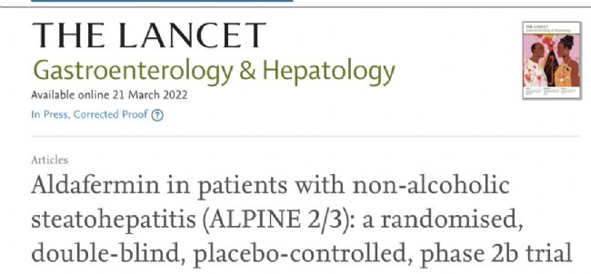 在這項隨機、雙盲、安慰劑對照的2b期研究(ALPINE 2/3)中,對活檢證實為NASH和2或3期纖維化的患者,研究者按照1:1:1:1的比例隨機分配了按纖維化分期分層的患者,在美國30個研究點接受安慰劑、Aldafermin 0.3 mg、1.0 mg或3.0 mg,每天一次,持續(xù)24周。主要終點是至少一個階段的肝纖維化改善,在第24周NASH沒有惡化。按意向治療進行分析。