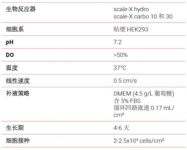 2. 所有培養(yǎng)瓶和多層容器的接種密度為 3x104cells/cm²,scale-X carbo 30 生物反應(yīng)器的接種密度為 1x104 cells/cm²;
