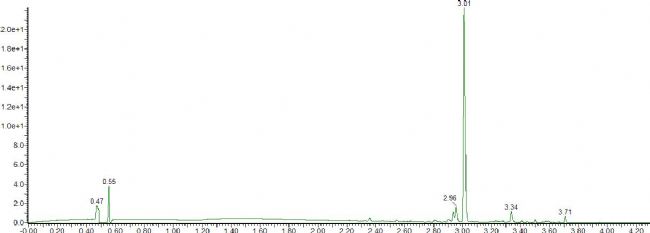 多肽分析在配備有 PDA 檢測器的 Waters Acquity UPLC 系統(tǒng)上分析肽, 該 檢 測 器 配 備 Acquity UPLC BEH C8 柱 (1.7 mm 和 2.1 x 100 mm)。UPLC 系統(tǒng)連接到 Waters 3100 Single Quad MS 用于結(jié)構(gòu)測定。在 Waters MassLynx 軟件上進(jìn)行峰分析。使用 (i) H2O 和 (ii) MeCN 中的 0.05% TFA 梯度洗脫進(jìn)行分離。