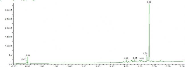 在 Liberty Blue 自動微波肽合成儀上 CEM 7-mer 的微波增強固相合成產(chǎn)生了純度為 78% 的目標(biāo)肽(圖 6)。