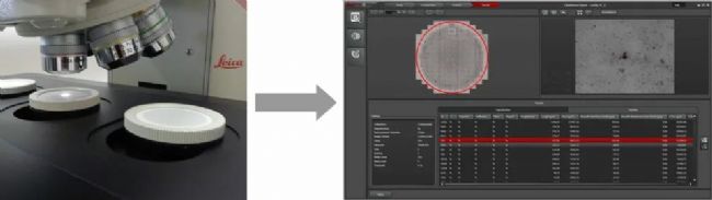 圖1: 用光學(xué)顯微鏡對(duì)濾膜上的顆粒進(jìn)行成像,然后進(jìn)行分析。