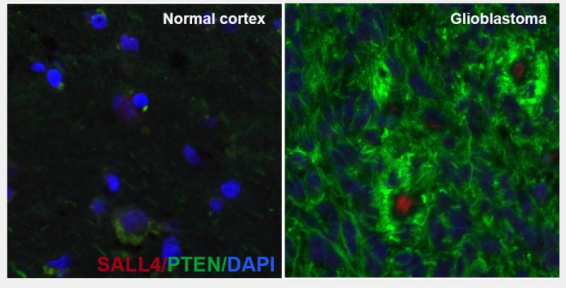 轉(zhuǎn)錄因子SALL4參與細(xì)胞增殖、凋亡、周期、侵襲、進(jìn)化和耐藥性。SALL4在膠質(zhì)瘤患者中過度表達(dá),并與不良結(jié)果相關(guān)。SALL4通過加強(qiáng)PI3K/AKT信號(hào)通路(這是一種眾所周知的調(diào)節(jié)腫瘤發(fā)生的通路,在膠質(zhì)瘤中顯著激活)發(fā)揮作用,從而降低腫瘤抑制因子PTEN的表達(dá)。