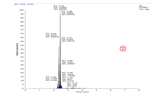 流動相梯度:初始80%A,20%A(0 min~2 min),20%A(2 min~3 min),80%A(3 min~3.1min),80%A(3.1min~5min)