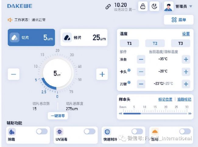 總結(jié):達(dá)科為CT520的冰切機(jī)電子配套不遜進(jìn)口產(chǎn)品,冷凍控溫系統(tǒng)結(jié)合了雙壓縮機(jī)和刀頭/樣品頭制冷是一個(gè)高端設(shè)計(jì),切片系統(tǒng)從0.5-100μm的精確切片,以及降低使用成本的整機(jī)三年保修,使CT520冰切機(jī)將逐漸會(huì)成為冰切市場(chǎng)的主力軍,來(lái)看看廠家的視頻吧。