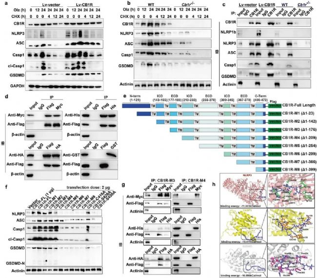 5. 機(jī)制解析(上下游蛋白的互作分析):CB1R通過177-209氨基酸殘基與NLRP3炎癥小體相互作用并阻止其降解