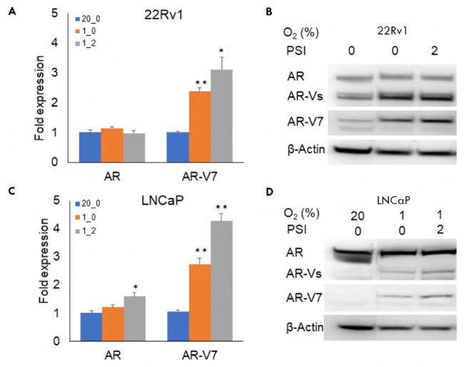 2. 腫瘤微環(huán)境條件誘導(dǎo)前列腺癌細胞表達雄激素受體,尤其是AR-V7