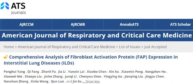 近日,廣州醫(yī)科大學(xué)呼吸疾病國家重點實驗室蘇金教授課題組與羅群教授及廣州醫(yī)科大學(xué)附屬第一醫(yī)院核醫(yī)學(xué)科王欣璐主任合作,在間質(zhì)性肺。↖LD)早診標(biāo)志物領(lǐng)域有重要新發(fā)現(xiàn),相關(guān)研究成果以 “Comprehensive analysis of fibroblast activation protein (FAP) expression in interstitial lung diseases (ILDs)”為題發(fā)表在《Am J Respir Crit Care Med》(IF:30.528)雜志上。