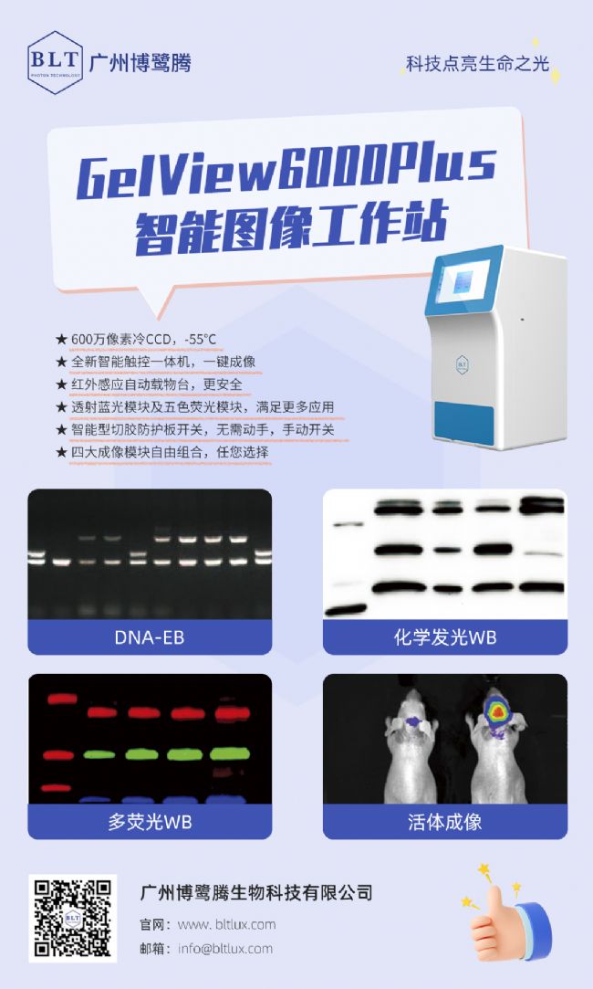 文章中Western Blot成像結(jié)果由博鷺騰GelView 6000Plus智能圖像工作站拍攝。