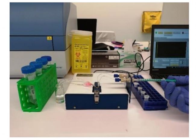 USB 供電的 P4SPR 可以連接到筆記本電腦,通過 P4SPR控制軟件啟動操作和數(shù)據記錄。易于使用的界面讓用戶可以輕松設置 P4SPR。首先,把微流體單元(圖3)蓋在金傳感器芯片上并緊密固定在傳感器芯片腔中。然后在樣品和參比通道中注入溶液以穩(wěn)定基線。S形樣品通道具有 3 個平行的感應區(qū)域,其可以提供三個重復樣品的測量以及與一個參考通道的控制測量。通過透明通道可以直接觀察在通道中是否有氣泡行成,以便立即清除從而防止任何信號丟失。