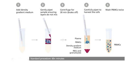 從血液制備PBMC是分離特定免疫細(xì)胞亞群之前常見(jiàn)的一個(gè)步驟。最常用的PBMC分選方法是使用密度梯度離心液進(jìn)行離心。