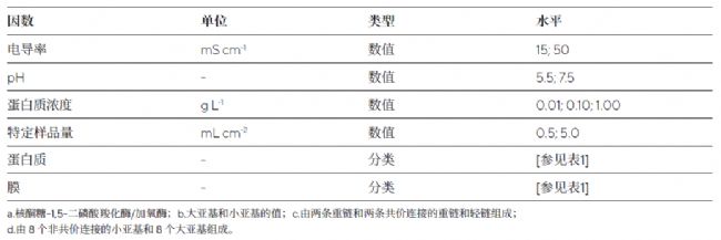 建立了具有 120 個測試的裂區(qū)實驗 | 最優(yōu)設(shè)計,其中包含四個數(shù)值和兩個分類因素(表2);通過混合線性二次模型研究針頭濾器不同膜的蛋白質(zhì)吸附性。