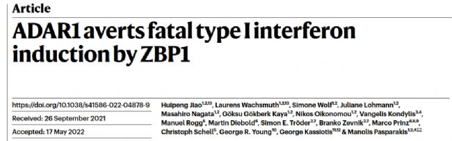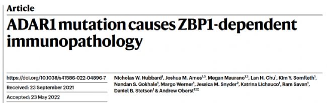 ADAR1 mutation causes ZBP1-dependent immunopathology”的文章[10],他們也發(fā)現(xiàn)
